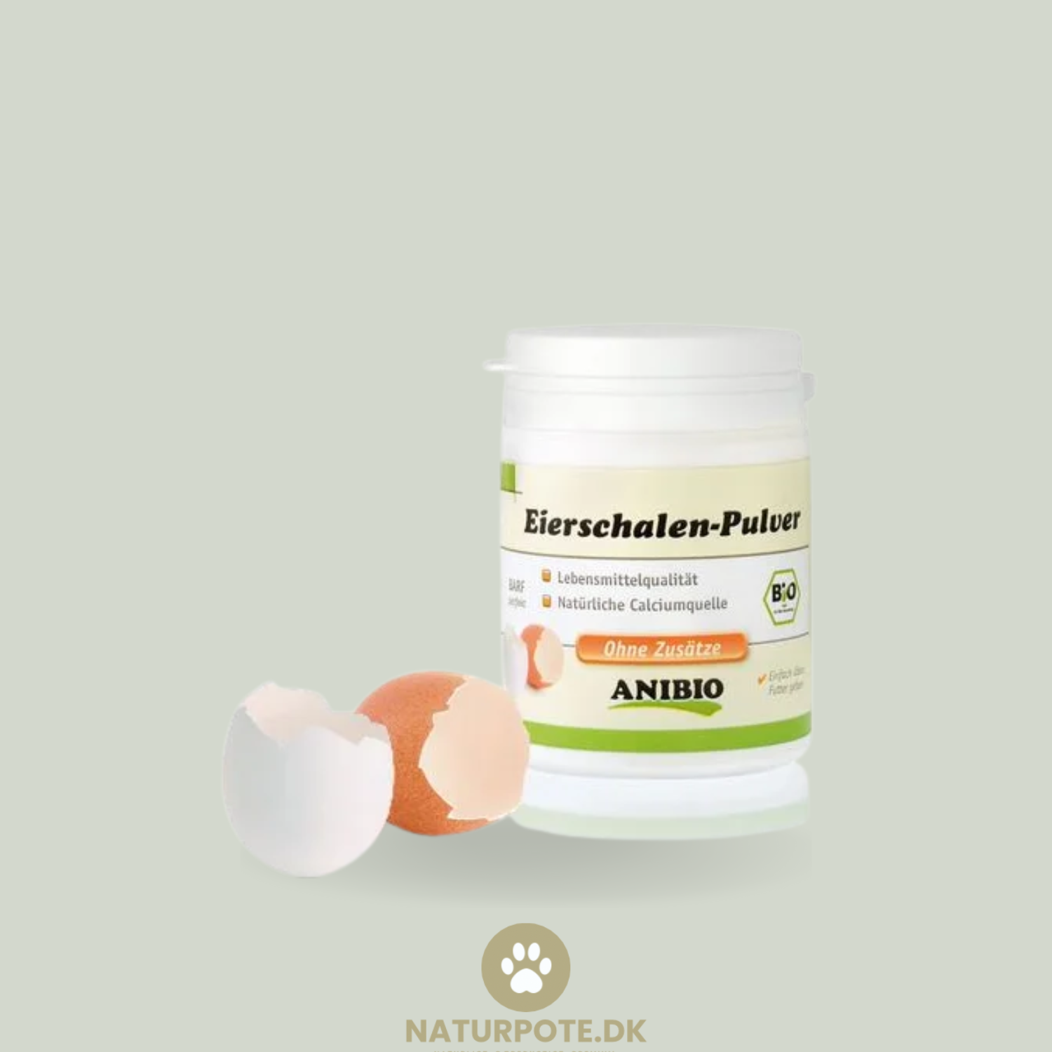 ANIBIO Æggeskalspulver er et 100 % naturligt calciumtilskud, ideelt som supplement ved fodring med råt eller frisk kød. Calcium spiller en afgørende rolle for udvikling og vedligeholdelse af stærke knogler og tænder.