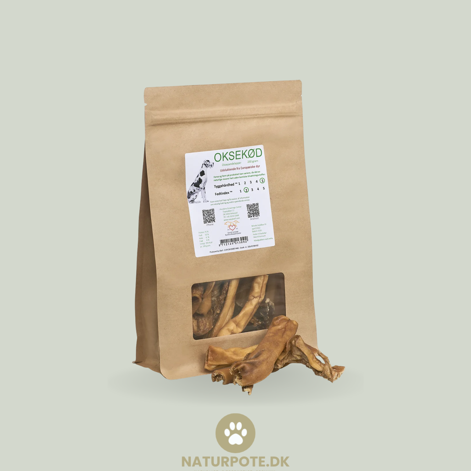 Oksepandelapper har en let sej, men stadig forholdsvis blød struktur, som giver en moderat tyggeudfordring. De fungerer samtidig som en naturlig tandrenser, der kan hjælpe med at reducere plak og stimulere tandkødet. Pandelapperne egner sig både til daglig forkælelse og som en del af en sund og afbalanceret tyggerutine.