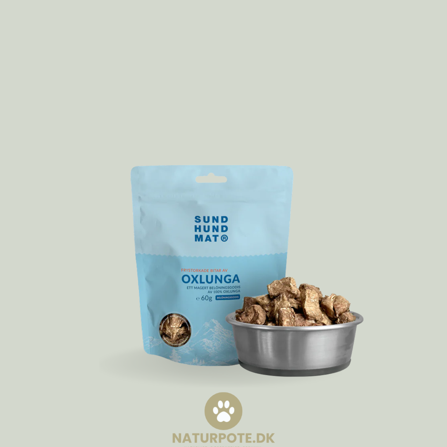 Et meget magert belønningsgodbid med en mild duft og høj fordøjelighed. De frysetørrede bidder af okselunge kan nemt deles i mindre stykker efter behov og gives direkte som belønning ved træning, konkurrence eller på den daglige gåtur.