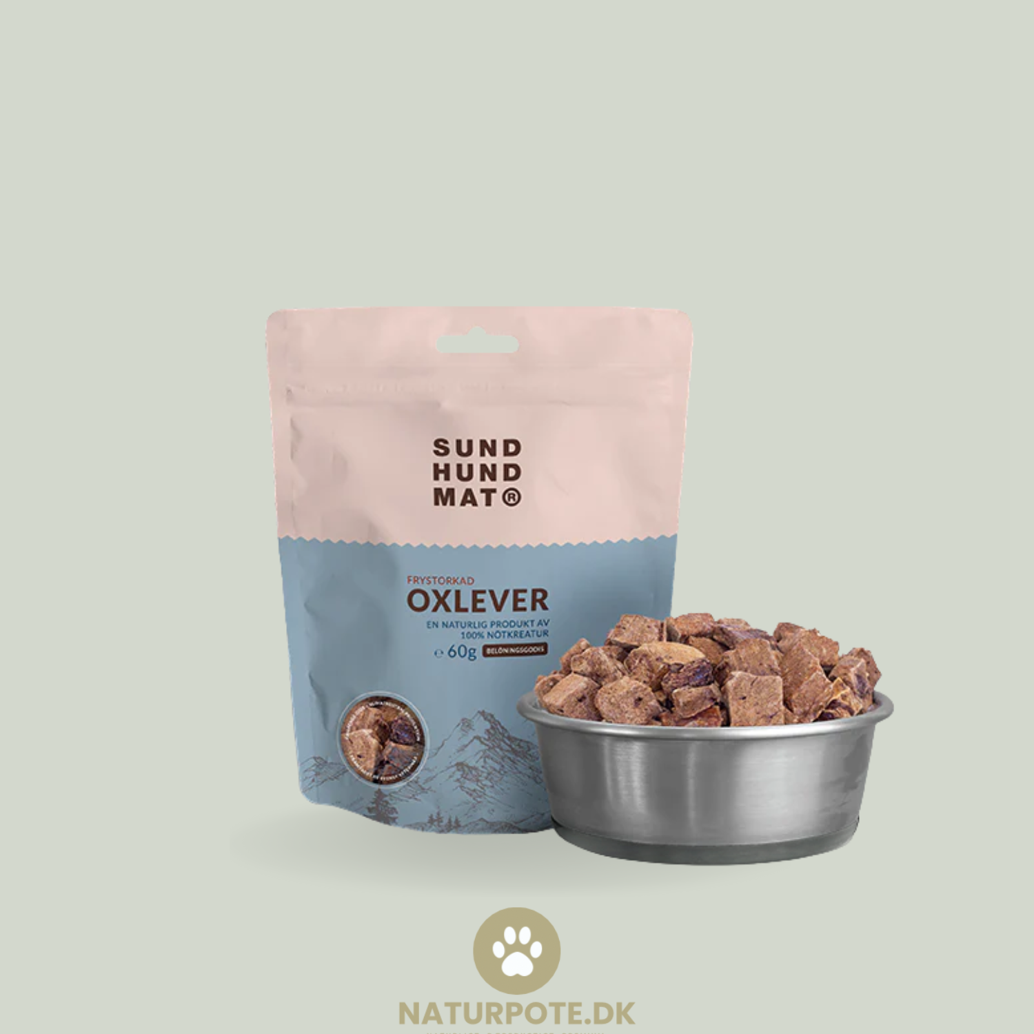 Et sundt belønningsgodbid, rigt på naturlige næringsstoffer. De frysetørrede bidder af okselever kan deles i mindre stykker efter behov og gives direkte som belønning ved træning, konkurrence eller på den daglige gåtur.