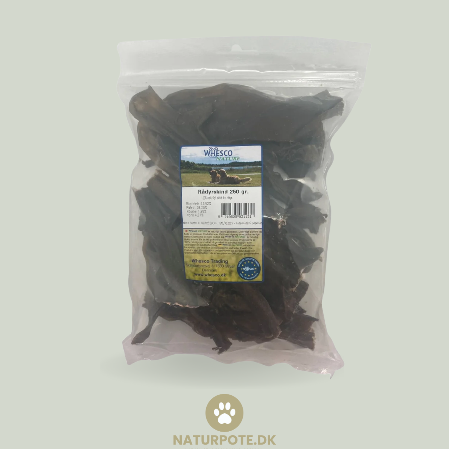 Rådyrskind fra Whesco Nature er et 100 procent naturligt tyggeprodukt, fremstillet af rent skind fra rådyr. Produktet giver langvarig tyggetid og er velegnet til hunde, der foretrækker naturlige, uforarbejdede snacks. Rådyrskind kan forekomme i både lyse og mørke farver, afhængigt af dyrets naturlige variation.